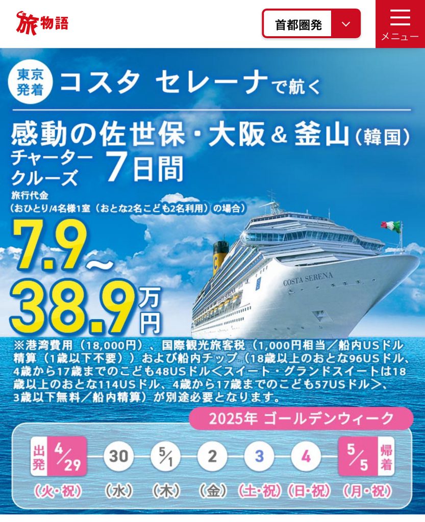 コスタセレーナで航く大阪、佐世保、釜山7日間レプラカン歌劇団5名ショー