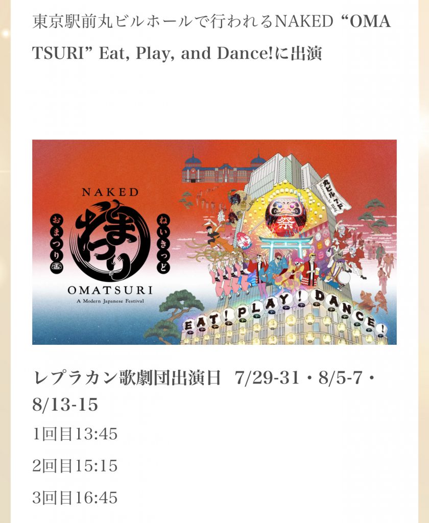 体験型イベントおまつりにてレプラカン歌劇団5名出演
